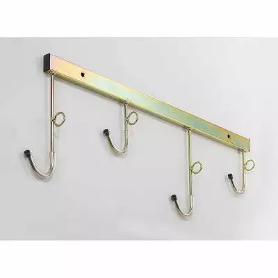 Cette fixation murale Andrys pour 4 vélos permet d’économiser de la place au sol en rangeant ses vélos. Elle peut être utilisée dans de nombreuses configurations : intérieur, garage, local à vélo pour salariés dans une entreprise, etc. Doté de 4 crochets, ce support mural permet de suspendre 4 vélos par les roues avant. Pour ne pas abîmer la jante, chaque crochet est enveloppé de plastique.