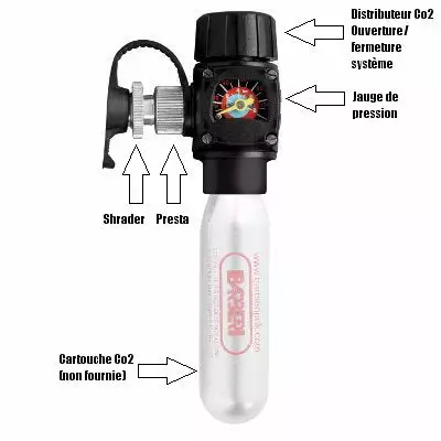 Gonfleur manomètre fonctionnant avec des cartouches universelles