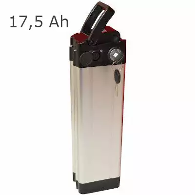 Conçue à l’origine pour les vélos électriques Hilltecks, cette batterie 36V fonctionne parfaitement sur de nombreux autres modèles de VAE. Elle s’installe sous la selle de vélo, sur le tube de selle, verticalement. Elle mesure 39 cm de hauteur, 11 cm de profondeur et 7 cm de largeur. Elle ne pèse que 3,7 kg. Elle s’installe facilement et se retire rapidement grâce à sa poignée ergonomique et solide. Un jeu de clefs est fourni pour sécuriser la batterie sur le vélo. Toutefois, nous vous conseillons de retirer la batterie du vélo dès que vous verrouillez votre VAE avec un antivol pour vélo électrique.