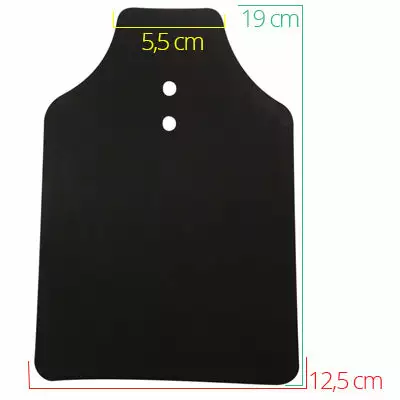 Cette bavette traditionnelle de couleur noire est fabriquée en PVC polyester. Pour installer la bavette, vous devez percer le garde-boue et ajouter deux vis M5 x12 mm et écrous, disponibles en option du produit. A noter que le plastique d’un garde-boue est suffisamment souple pour être percé avec un couteau, une vis ou même un clou.