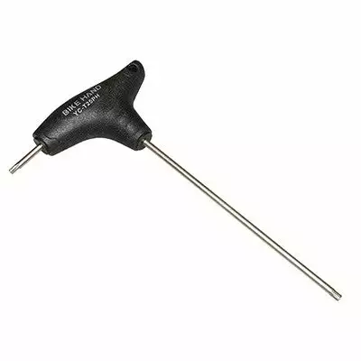 Cette clef torx de taille T25 est munie d’une prise en main en plastique pratique pour bien entretenir le vélo. L’embout le plus court de 20mm de longueur vous permet de rejoindre les vis placées dans les endroits exigus de votre vélo alors que l’embout le plus long mesure 155mm.