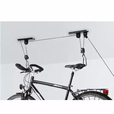 Il suffit alors de hisser le vélo d’un poids inférieur à 20 kg grâce au système de poulies démultipliant l’effort. Le vélo peut être suspendu jusqu’à une hauteur de 4 mètres au dessus du sol.