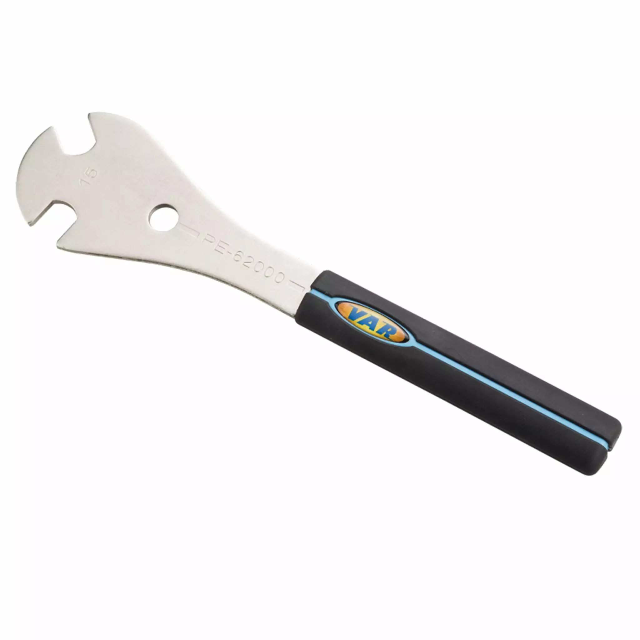 La clé à pédale Premium Var PE-62000-C est un outil de qualité pour démonter et resserrer les pédales de votre vélo. Compatible avec les manivelles à emmanchement de 15 mm.