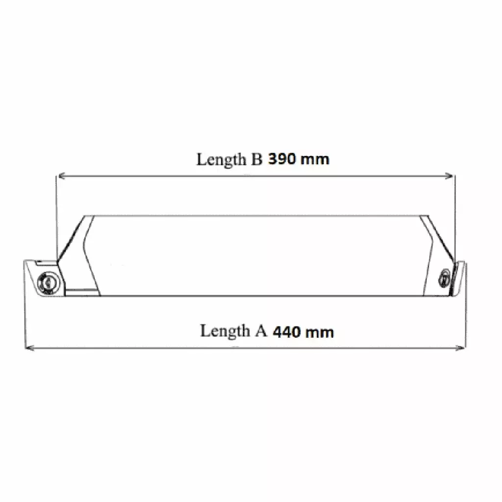 La batterie mesure 390 mm de longueur, comme vous pouvez le voir en photo n°5, avec une longueur de 440 mm qui correspond au support de la batterie sur le cadre et avec le barillet.