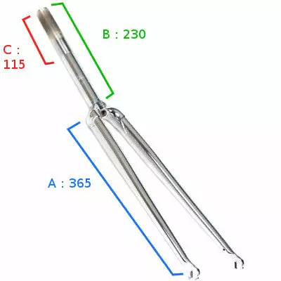 La fourche BLB Classic est compatible avec les roues avant de 700 mm ou 28 pouces de diamètre. Son jambage mesure 365 mm. Le pivot de la fourche mesure 230 mm et est fileté sur une longueur de 115 mm. La fourche possède un diamètre de 1 pouce et elle est compatible avec les potences plongeur. Pour finir l’installation il vous faudra un jeu de direction 1 pouce, tel ce jeu de direction chromé pour pouvoir tourner avec précision.