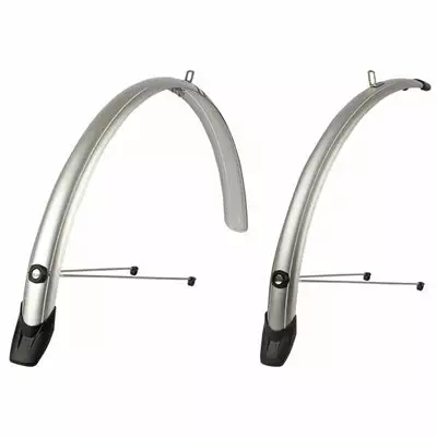 Les garde-boues Towny 26 pouces de la marque Polisport protègent le cycliste des éclaboussures. Léger et robuste, le set de couleur argent donne un look urbain tendance et moderne au vélo.Ils garantissent une bonne protection et une bonne couverture des pneus grâce à une largeur de 51 mm et une longueur de 650 mm pour le garde boue avant et 1060 mm pour l’arrière. Pour maximiser la protection, les garde-boues sont équipés d’un nez et de bavettes à l’arrière.