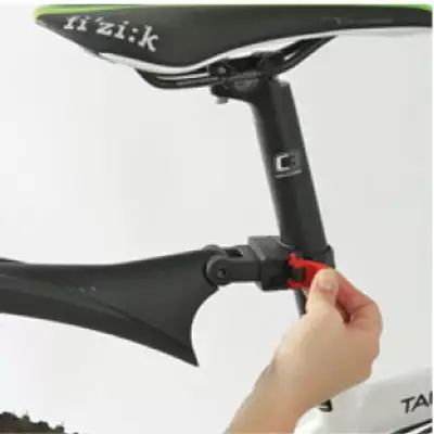 Le Cross Country EVO se fixe facilement sans outils sur la tige de selle possédant un diamètre compris entre 24 et 36 mm. Il est orientable en un point afin de s’adapter au vélo. Le garde boue est facile à retirer lorsqu’il n’est pas utilisé.