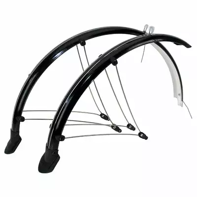 Conçus pour équiper un vélo avec des roues de 20 pouces, les garde-boue avant et arrière sont en plastique à la fois flexible et résistant. Ils offrent une protection efficace avec une lame large de 60 mm et longue de 57 cm à l’avant et 68 cm à l’arrière.