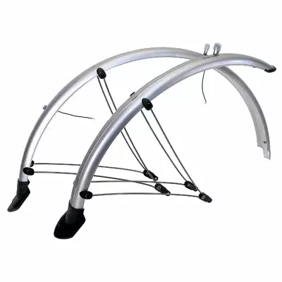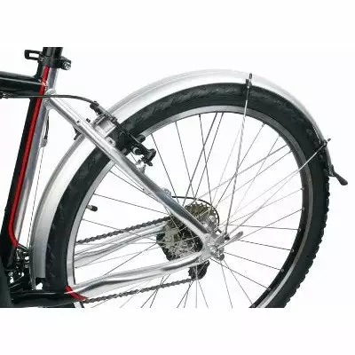 Ces garde-boues s’adaptent sur les VTT aux roues de 26 pouces. Le cycliste reste protégé des éclaboussures par les lames de 60 mm de largeur. Fabriqué en plastique de couleur argent, il est très résistant. Ces garde-boues possèdent les contacts électriques qui permettent d’installer et connecter facilement les feux avant et arrière.