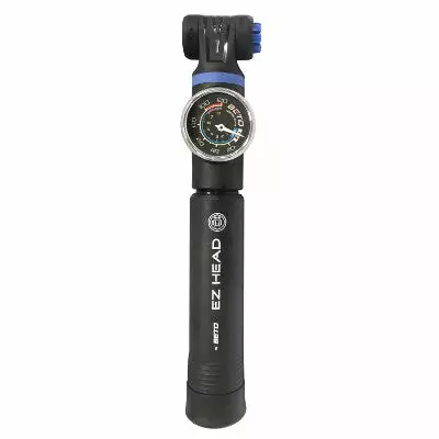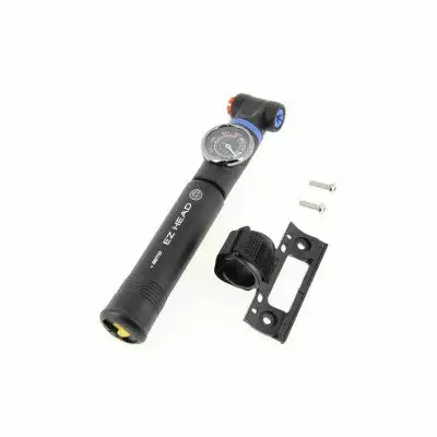La pompe EZ Head pèse à peine 140 grammes pour une longueur de 22 cm. Peu encombrante, elle peut s’installe sur le cadre à l’aide d’une fixation fournie. Grâce à un manomètre intégré permettant de mesurer la pression de l’air, le gonflage se fait avec précision. Dotée d’une puissante pression de 8 bar / 120 psi, elle possède une capacité de 31 cm3 en mode Hi-pressure pour un gonflage lent mais à forte pression pour les gros volumes. Pour un gonflage en Hi-volume pour un gonflage rapide, elle offre une forte pression de 73 cm3.