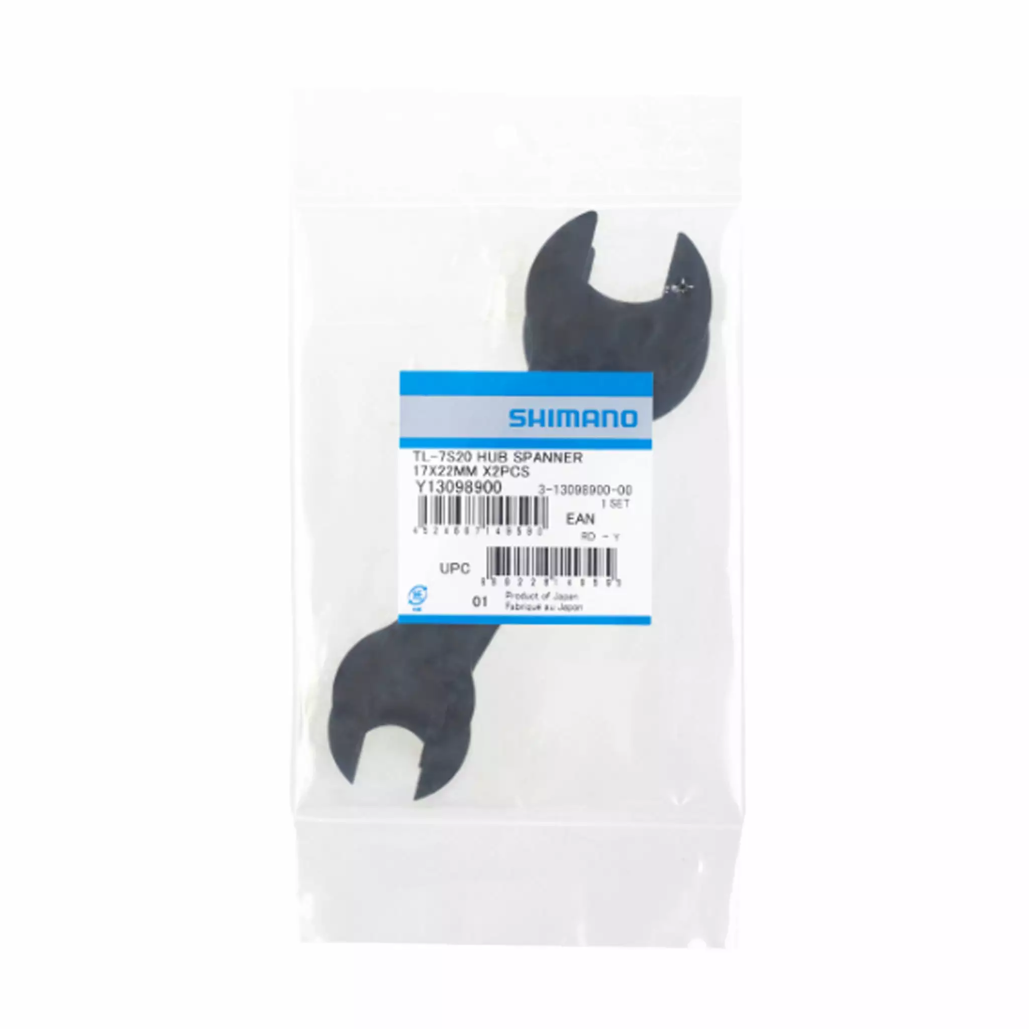 Shimano propose sa paire de clés à cône pour le montage/démontage et le réglage des cônes des moyeux de marque Shimano. Chaque clé plate a deux ouvertures, l’une de 17 mm et l’autre de 22 mm.