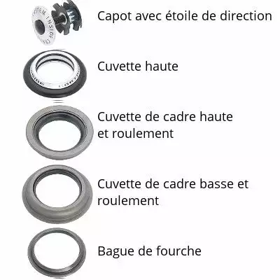 Ce jeu de direction de vélo s’installe dans le tube de direction du cadre sur une fourche non filetée.