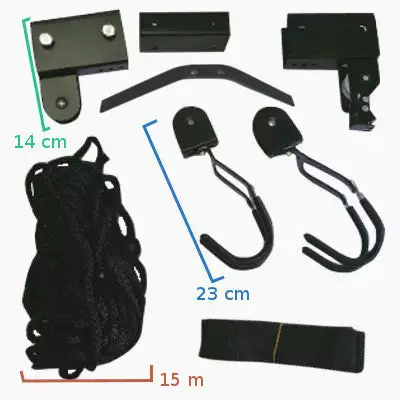 Ce rangement se met au plafond et est conçu avec un système de poulie pour monter ou descendre son vélo facilement. On y retrouve en plus un système de verrouillage inclus pour que le vélo se fixe sans risque.