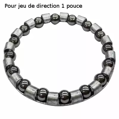 Le roulement est en acier ce qui le rend résistant à l’usage. Il est conçu pour fluidifier la rotation de la direction et nécessite une attention toute particulière en cas d’usure pour ne pas risquer de détériorer les cuvettes du jeu de direction.
