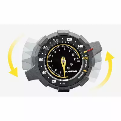 Actionner le mode « Charge » gonflera automatiquement votre pneu en un instant et fait passer 303cc d’air dans le pneu. Si vous n’avez pas assez de pression, il suffit de passer au mode « Inflate » de gonfler jusqu’à la pression souhaitée. À l’inverse, un bouton de décompression pour libérer de l’air permet de réguler la pression à l’arrière du réservoir.