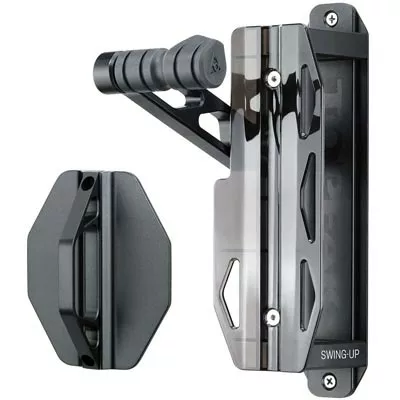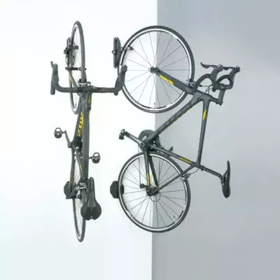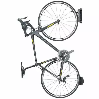 Une barre de caoutchouc moulé immobilise la roue avant, évitant au vélo de se pencher. Tous les accessoires de montage sont fournis, ainsi qu’un coussinet de caoutchouc moulé pour éviter les traces de pneu sur le mur. Lorsqu’il est accroché au Swing-Up, le vélo peut être pivoté de part et d’autre, et peut aussi être verrouillé par cran de 15 degrés afin d’optimiser l’espace utilisé.