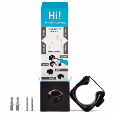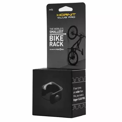 Le range-vélo mural Clug Pro est le fruit de la collaboration entre Hornit et Fidlock afin de proposer un range-vélo sécurisé, moderne et fonctionnel. En effet, le support mural Clug classique se voit ajouter un système de manivelle aimantée qui permet un maintien sécurisé du pneu, empêchant ainsi la chute du vélo en cas de secousse accidentelle ou si le pneu se dégonfle après avoir été parqué lors d’une longue période de temps. Le Clug Pro a reçu un prix lors du dernier Eurobike pour son ingéniosité.