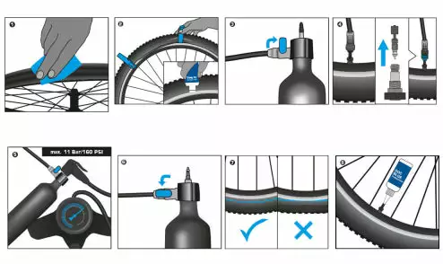 Voici le manuel d’utilisation fourni par Schwalbe pour le Tire Booster en image et en texte.