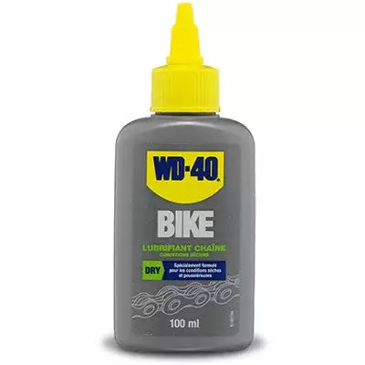 Le lubrifiant de la marque WD40 sert à entretenir et à lubrifier certains composants pour vélo comme la chaîne, les dérailleurs, les câbles et les pignons, afin de leur offrir une meilleure durée de vie. Il a été élaboré particulièrement pour les vélos se déplaçant dans des conditions sèches sur un parcours sablonneux ou poussiéreux.
