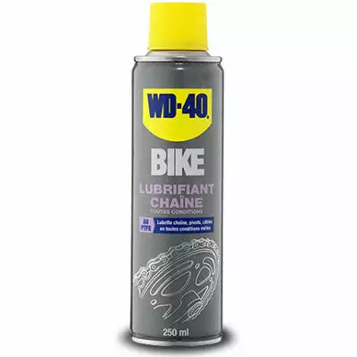 Lubrifiant pour chaîne de vélo WD40 par temps sec ou humide